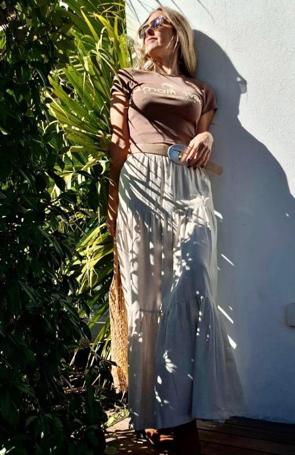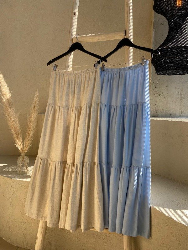 Estilo boho chic en dos colores soñados. La falda Ranch, con sus volados, es un básico infaltable para un look cómodo, fresco y femenino.