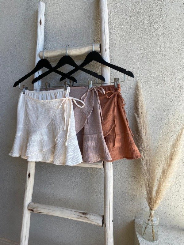 Mini falda eslastizada con pareo, ligera y fresca. Ideal para tus looks de veranos en tendencia. TALLE UNICO.