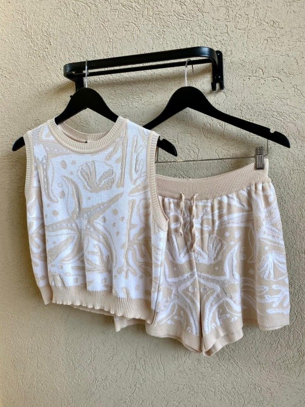 Sumergite en el estilo resort con un conjunto de punto que es la definición del lujo cómodo y ligero. Confeccionado con un tejido suave, el Top cropped sin mangas y los Shorts de cintura elástica con cordón ajustable crean un look monocromático elegante. Perfecto para tus viajes de fin de semana, paseos por la playa o para inyectar una vibra de vacaciones a tu día a día. TALLE UNICO.
