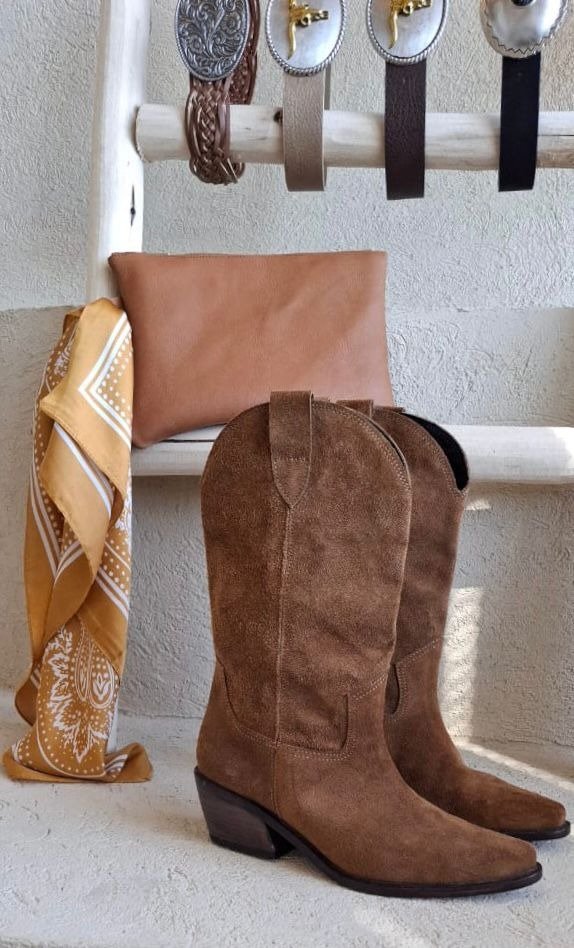 Texanas gamuza media caña: 29cm aprox. Taco: 5cm aprox. Comodas, cancheras, no pueden faltar en tus looks de primavera/verano.