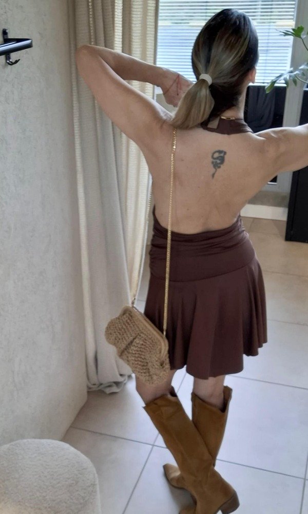 El estilo boho-glam que buscabas. Confeccionado en tela fluido, espalda descubierta. La cintura está diseñada con un fruncido estratégico que esculpe la figura, mientras que la falda con corte y vuelo asimétrico añade movimiento TALLE M.