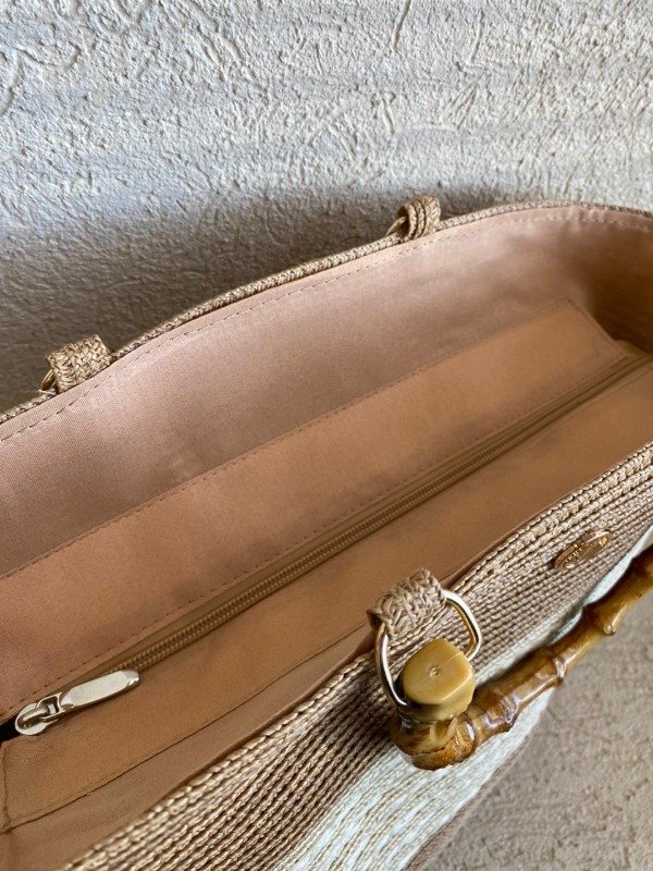El accesorio imprescindible que define la temporada. Esta pieza fusiona la artesanía tradicional con un diseño de lujo contemporáneo, ideal para quien valora la sofisticación. Forrado por dentro, con cierre y un bolsillo. 39x27cm.